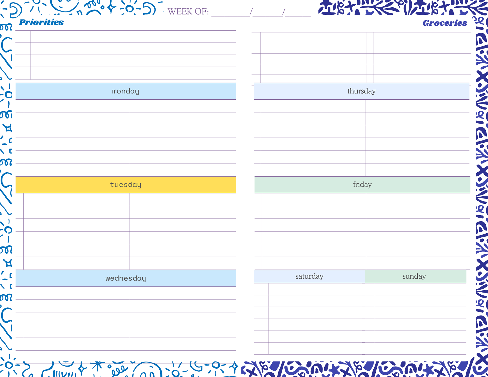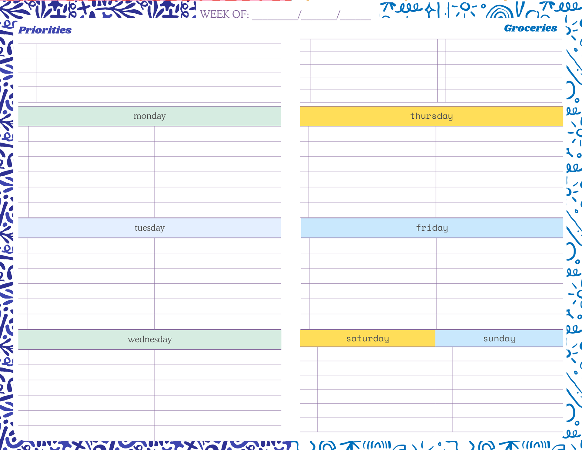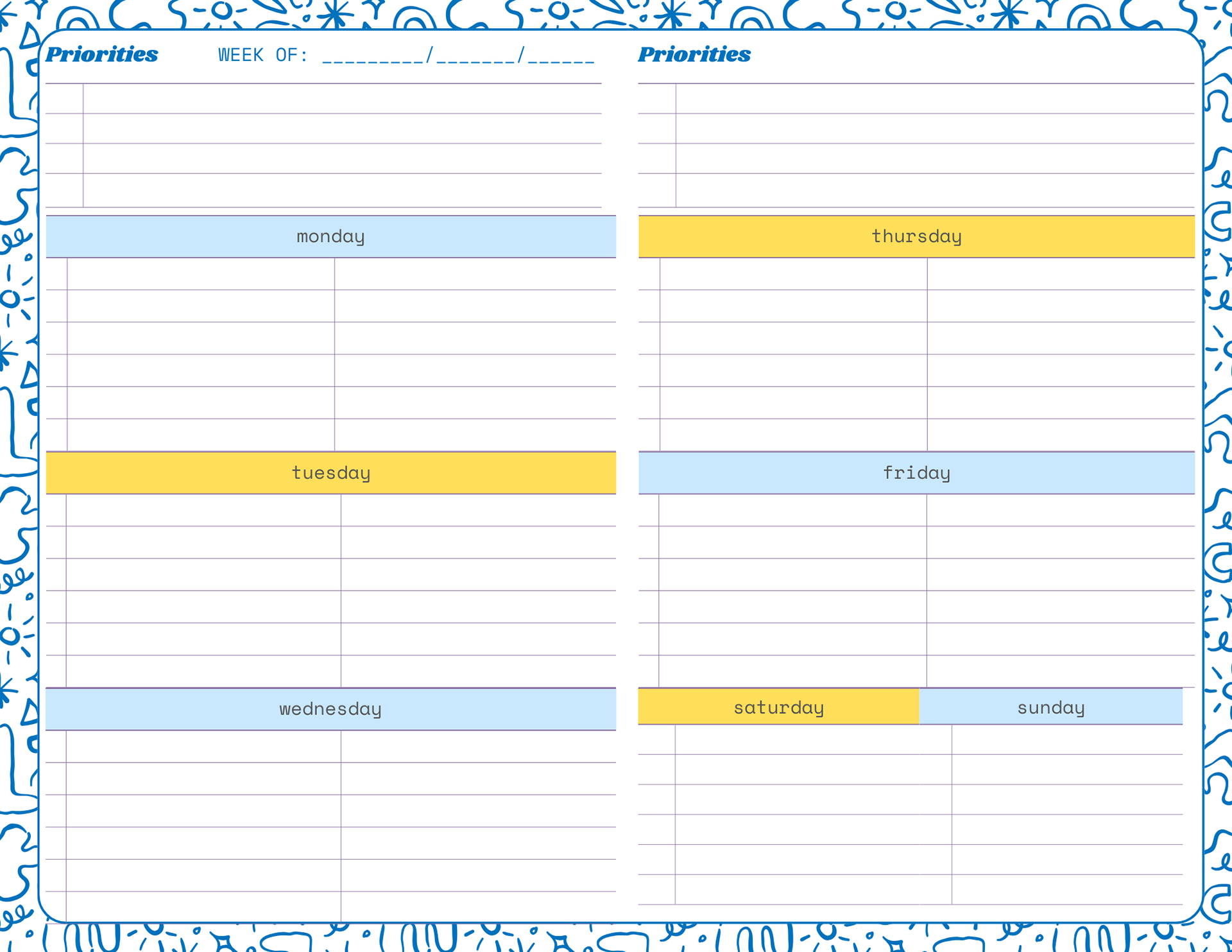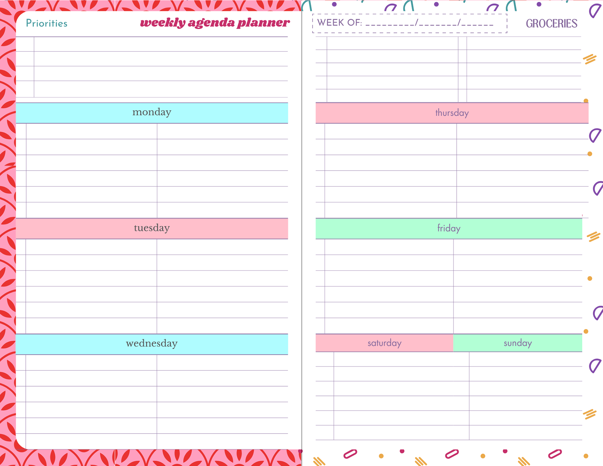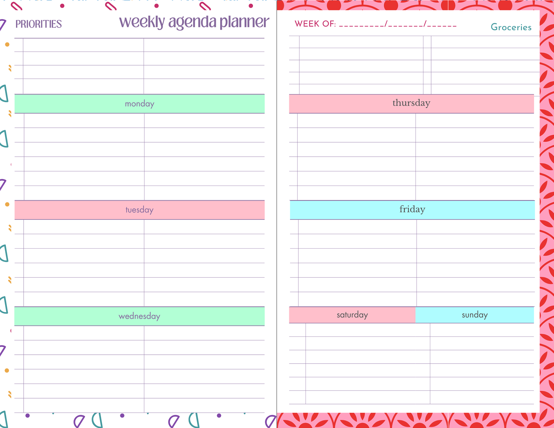 Personal planner created for print, with alternating page patterns. Made on Canva.
